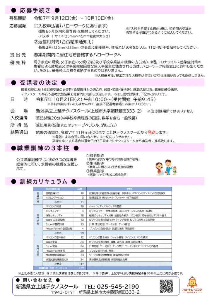 - 令和7年9月開講 訓練期間3か月